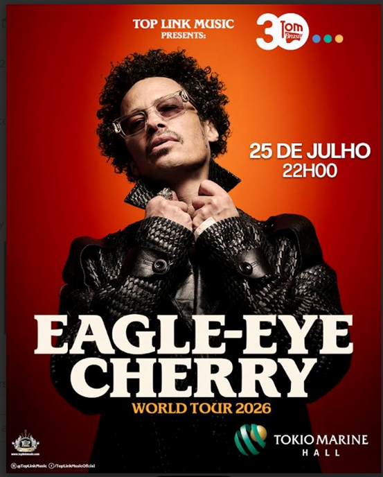 O cantor e compositor Eagle-Eye Cherry retorna ao Brasil em 2026 para um show em São Paulo que promete unir nostalgia e renovação. A apresentação acontece no dia 25 de julho, no Tokio Marine Hall, como parte da World Tour 2026, em uma realização da Top Link Music.