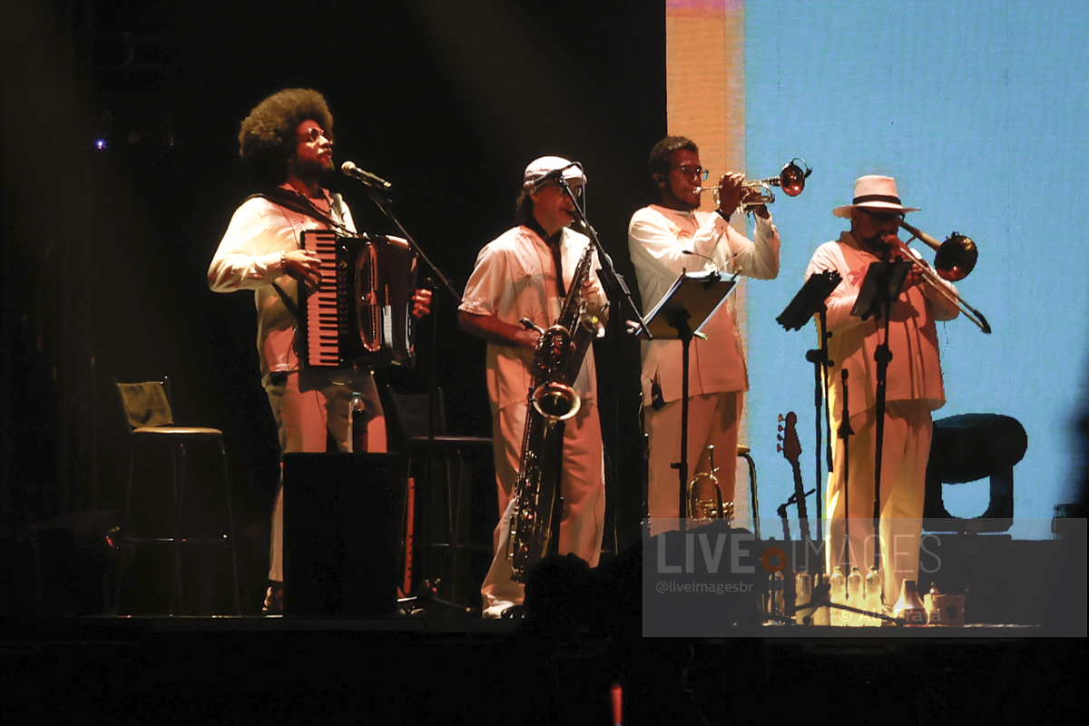 A banda potente de apoio de Gil encheu o palco do Allianz Parque. Entre os músicos, estavam parte da família do cantor em diversos instrumentos e backing vocals, além de um quarteto de cordas, naipe de metais e estrelas como Mestrinho. O jovem e virtuoso sanfoneiro brilhou, principalmente, em momentos de forró, como Eu Só Quero um Xodó.