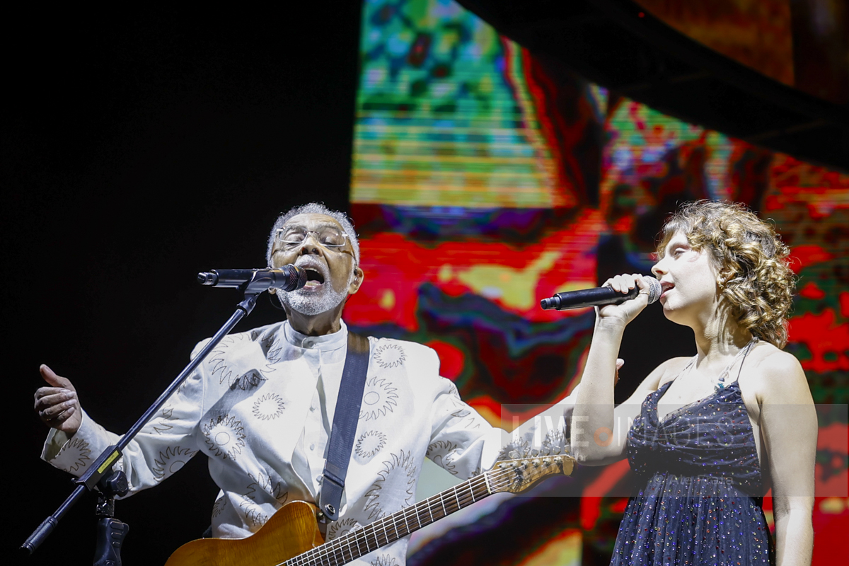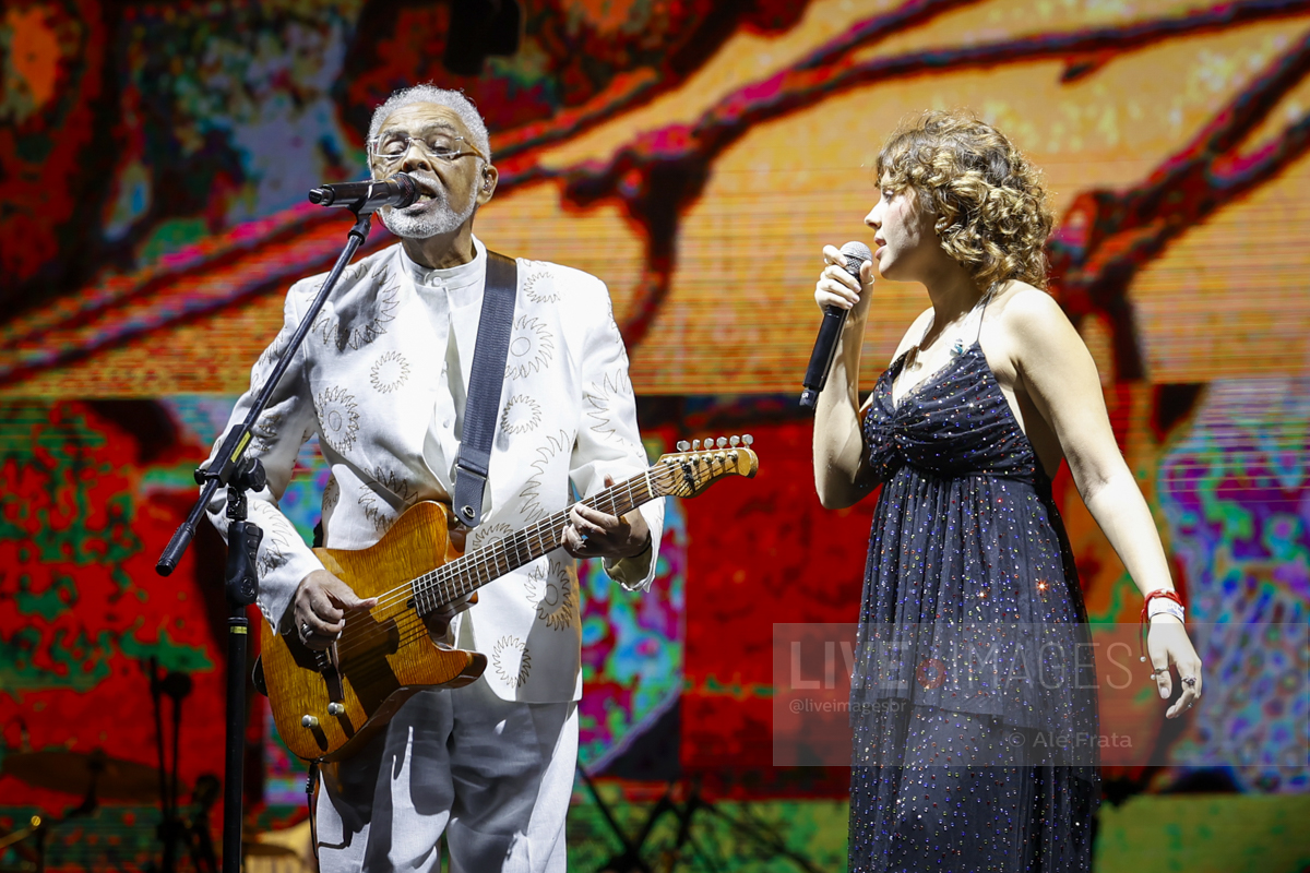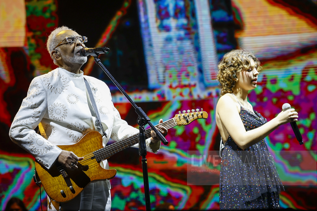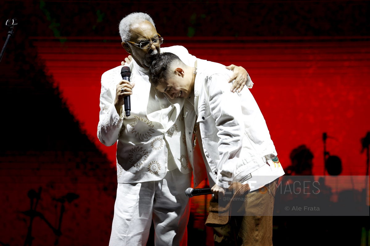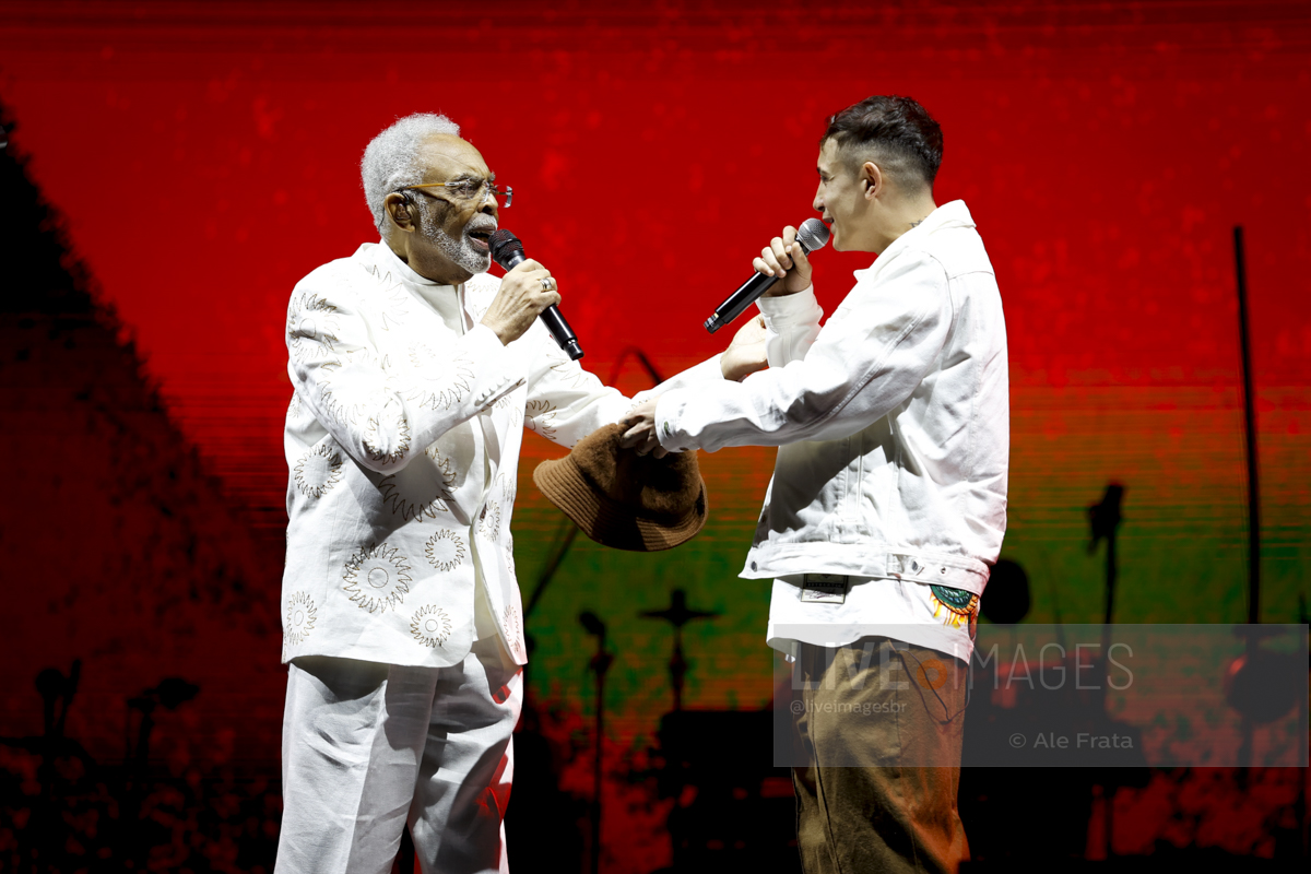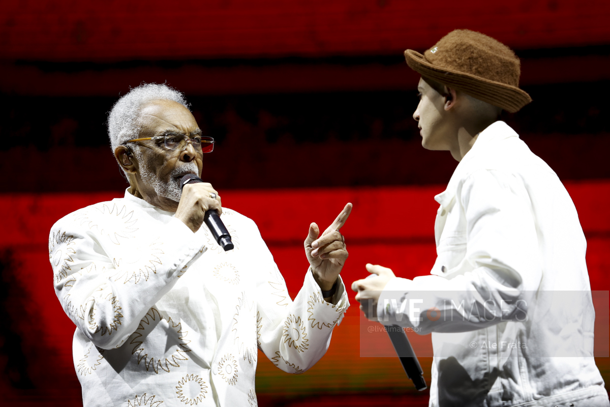 Já em momento mais descontraído, a nova geração foi convocada nas participações especiais da neta Flor, soltando a voz em Refazenda, e o funkeiro MC Hariel, rimando no single que gravou com Gil, A Dança.