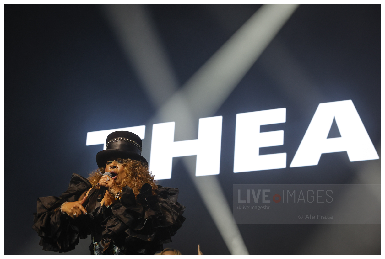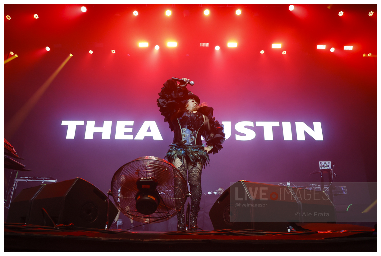 Abrindo a noite, Noel apresentou um set solo marcado pela estética eletrônica oitentista, com repertório voltado ao freestyle e à dance music que dominaram as pistas nos anos 80 e 90, encerrando sua participação com o clássico “Silent Morning”. Na sequência, Thea Austin, a voz do hit mundial “Rhythm Is A Dancer” do SNAP!, conectou o público a uma era em que os sintetizadores e os refrões dançantes reinavam absolutos.