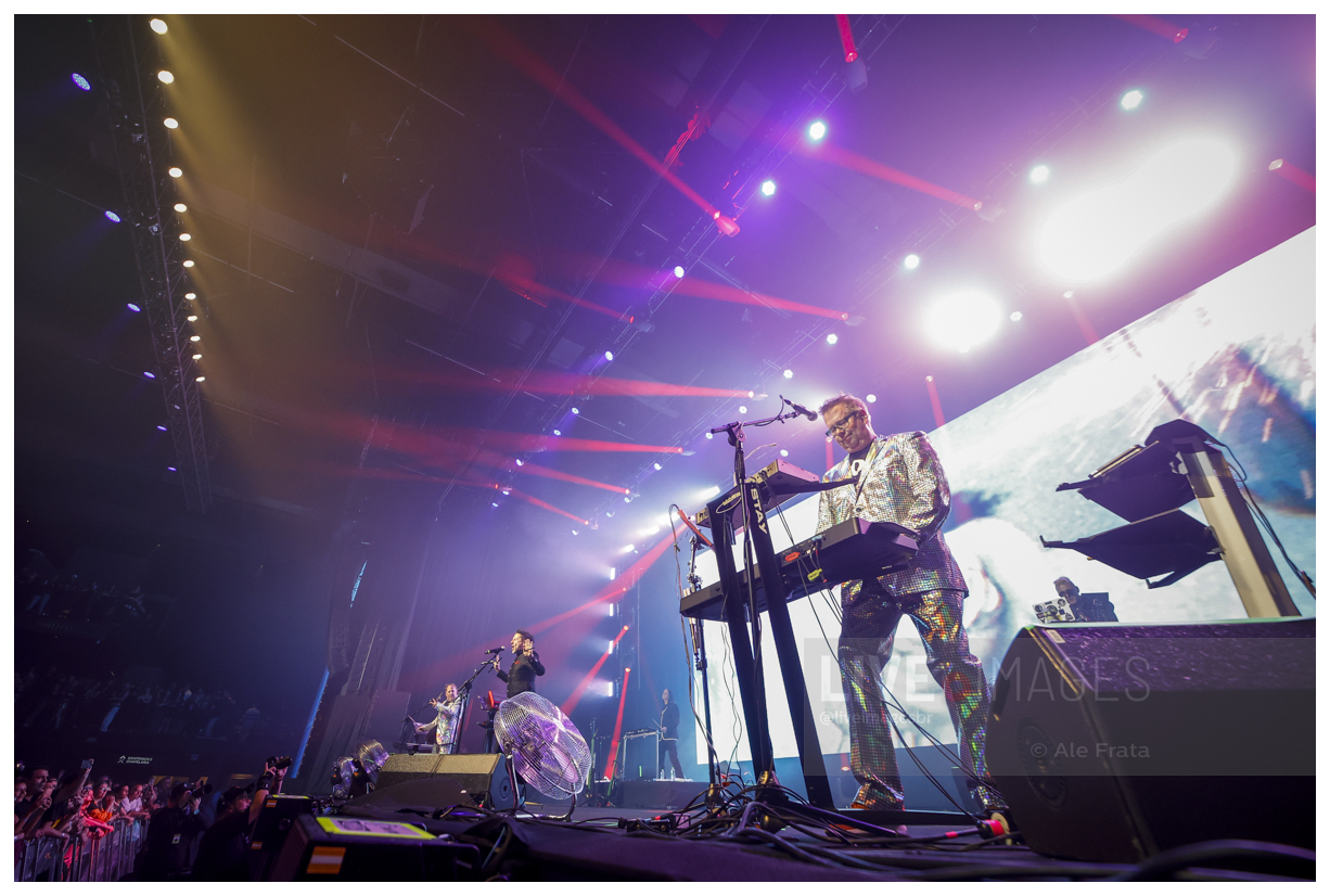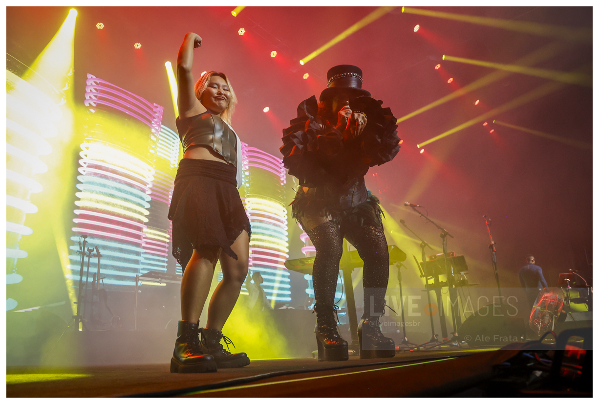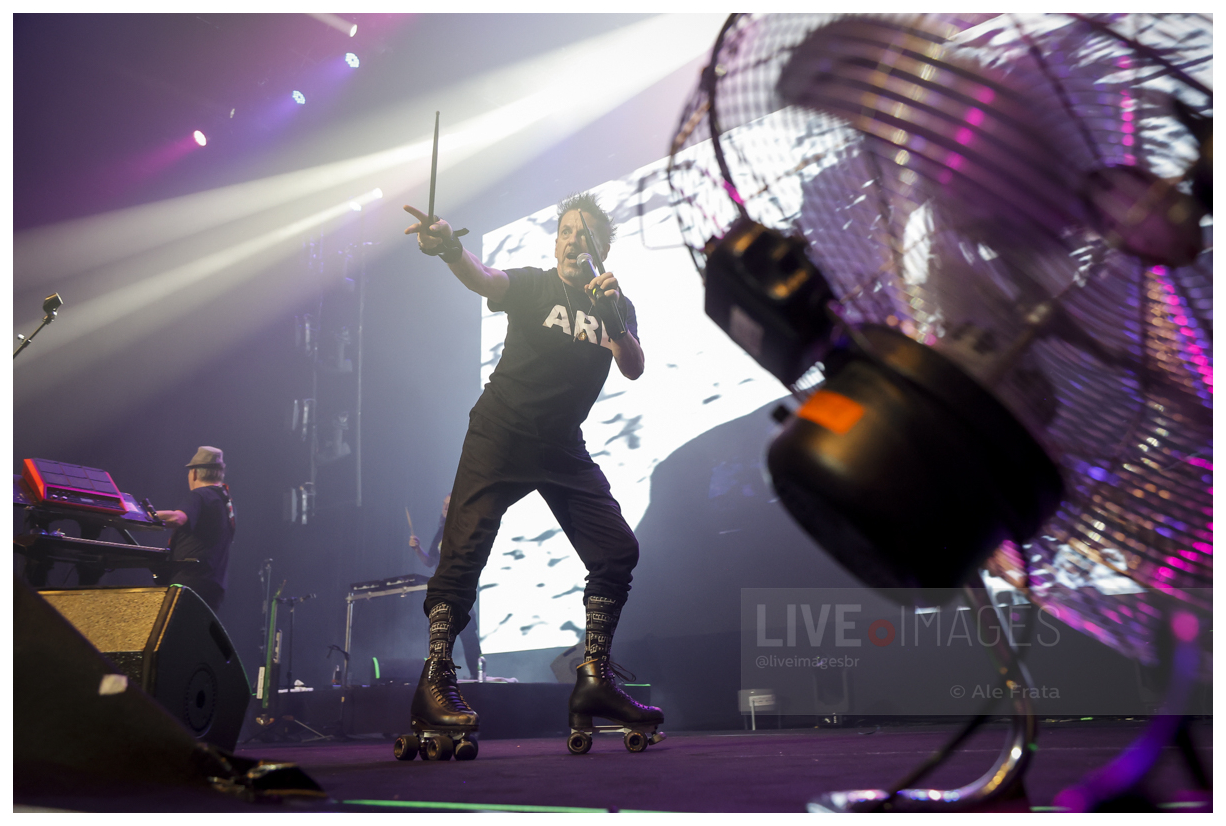 No palco, o trio mostrou por que segue relevante décadas depois. Em um dos momentos mais celebrados da noite, Kurt Harland retornou ao palco usando patins — marca registrada da banda desde os anos 80 — entregando o que o grande público esperava. O gesto reforçou o espírito performático e irreverente que sempre acompanhou o Information Society, unindo música, imagem e atitude.