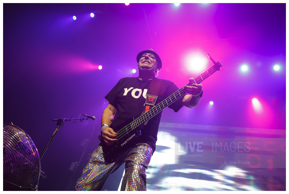 A apresentação mais aguardada da noite ficou por conta do Information Society, que entregou um show energético, preciso e carregado de memória afetiva. Formado em Minneapolis, Estados Unidos, entre 1981 e 1982, o grupo nasceu da parceria entre Kurt Harland, Paul Robb e James Cassidy, apostando desde o início em sintetizadores, samplers e drum machines para criar uma sonoridade que misturava eletrônica europeia, hip-hop e referências latinas. O sucesso mundial veio no fim dos anos 1980 e início dos 1990, com hits como “What’s on Your Mind (Pure Energy)” e “Think”, que transformaram a banda em um dos nomes mais emblemáticos do synth-pop e da new wave.