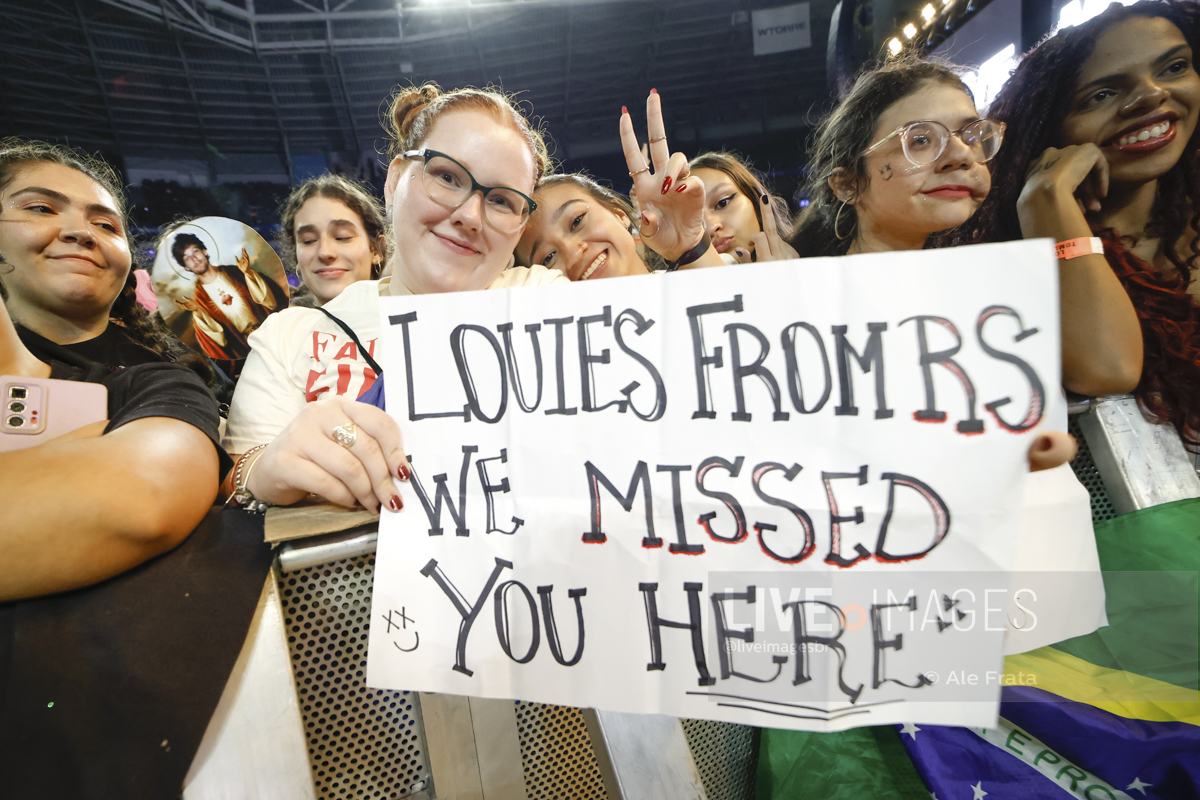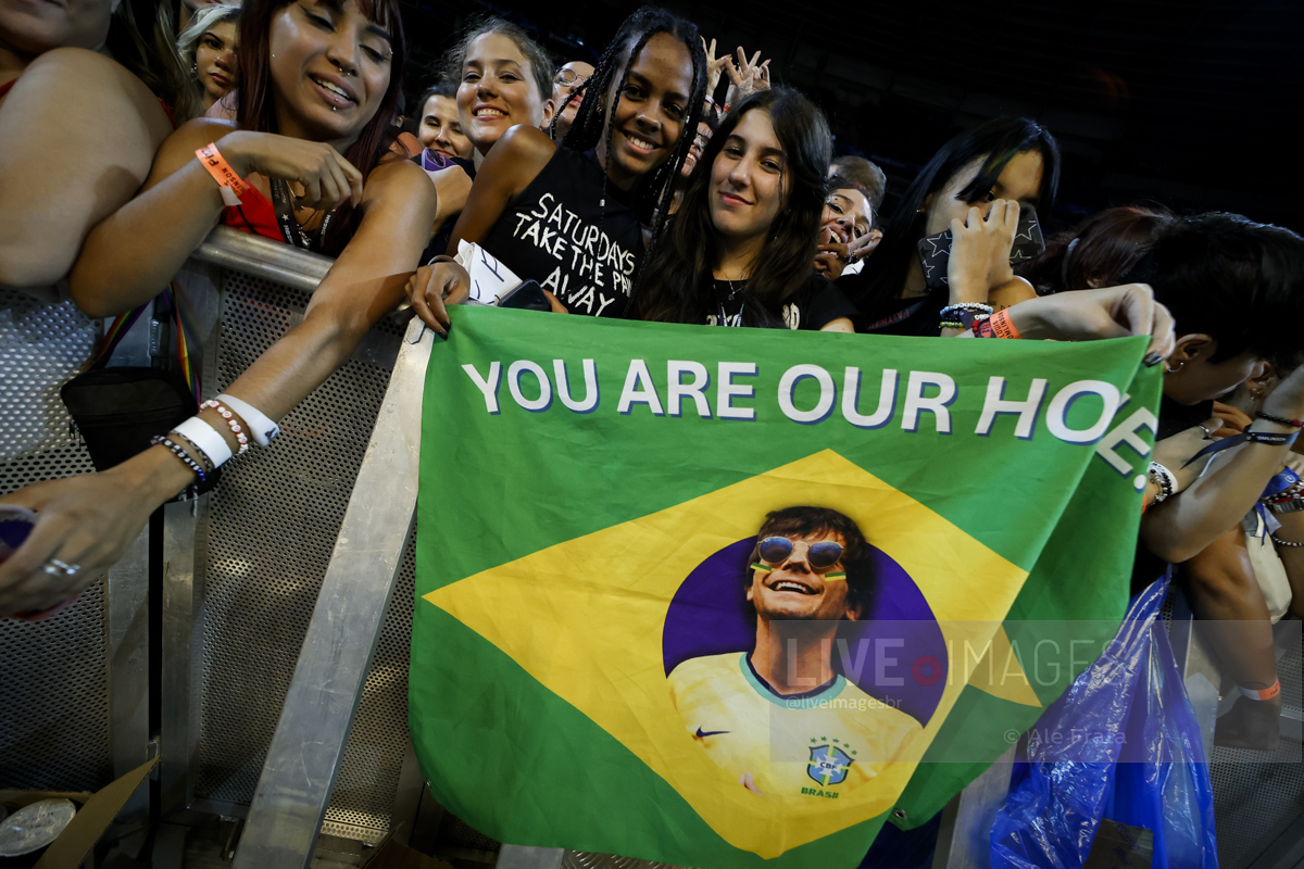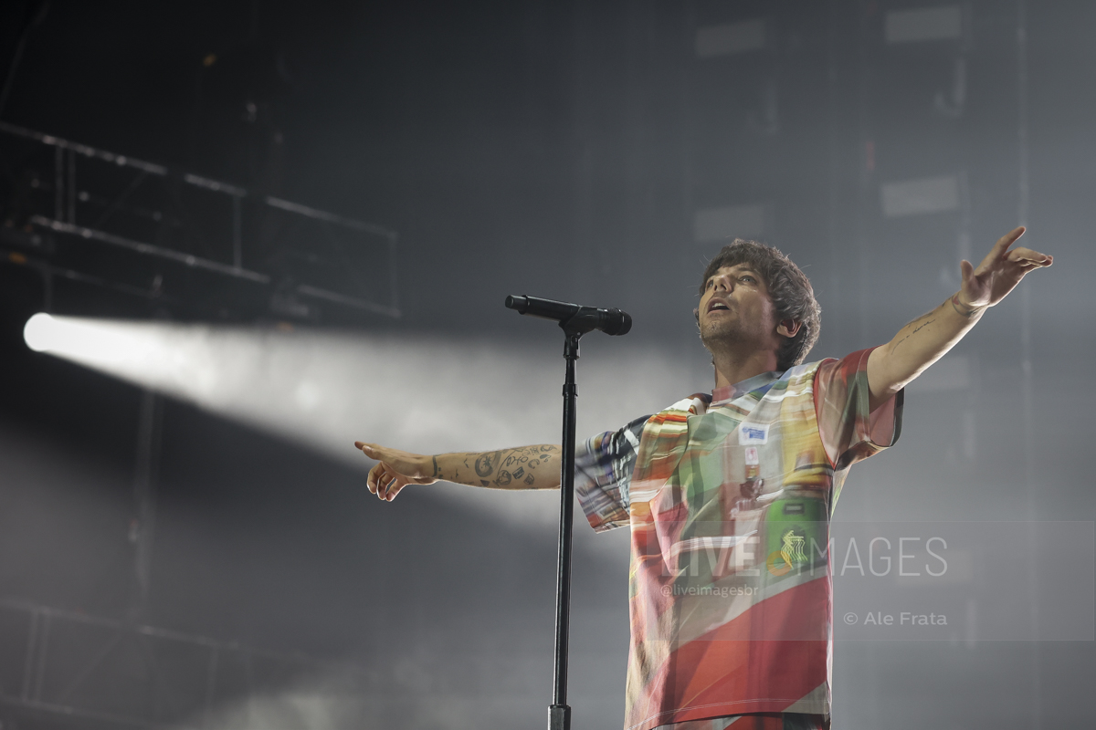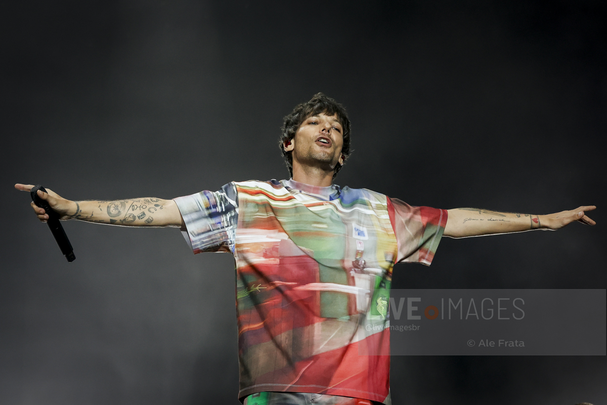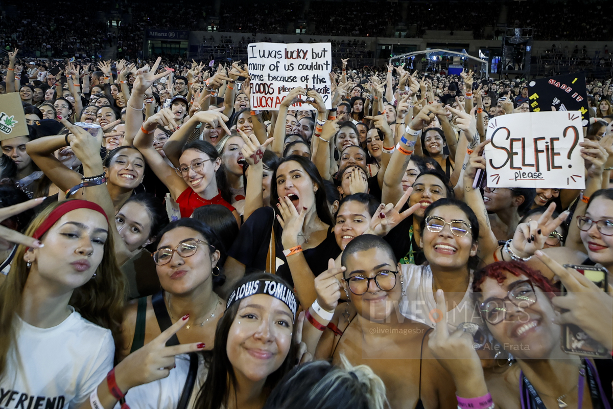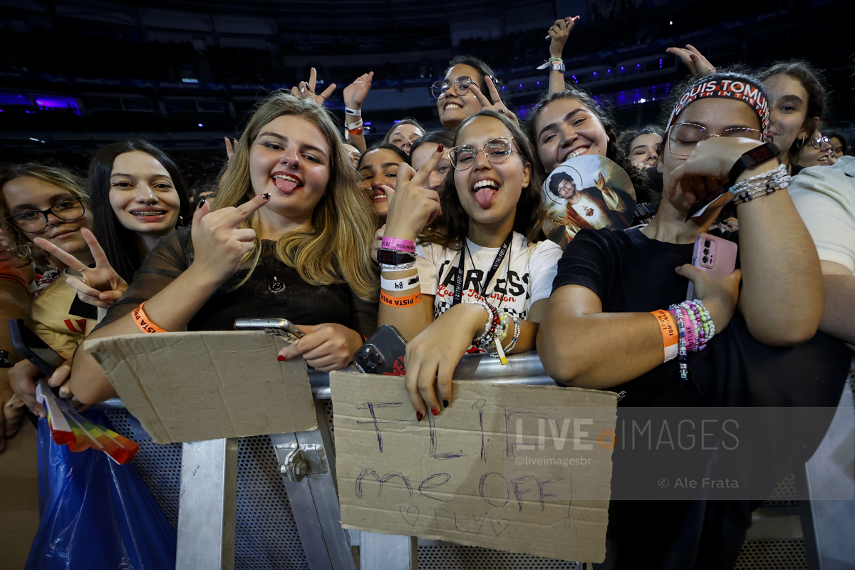 São Paulo, 11/05/2024 – Allianz Parque – O britânico Louis Tomlinson, ex integrante da boy band One Direction, se apresentou em São Paulo, com a turnê Faith In The Future World, segundo álbum da carreira solo do cantor, e que o levou ao topo das paradas inglesas. A tour passou por Rio de Janeiro, São Paulo e Curitiba. Segundo relato de uma fã, mostrar o dedo do meio é uma saudação entre o cantor e seu público. A abertura dos shows ficaram a cargo dos alemães da Giant Rooks, banda indie formada em meados dos anos 2010, que chegou aquecendo o público paulista.