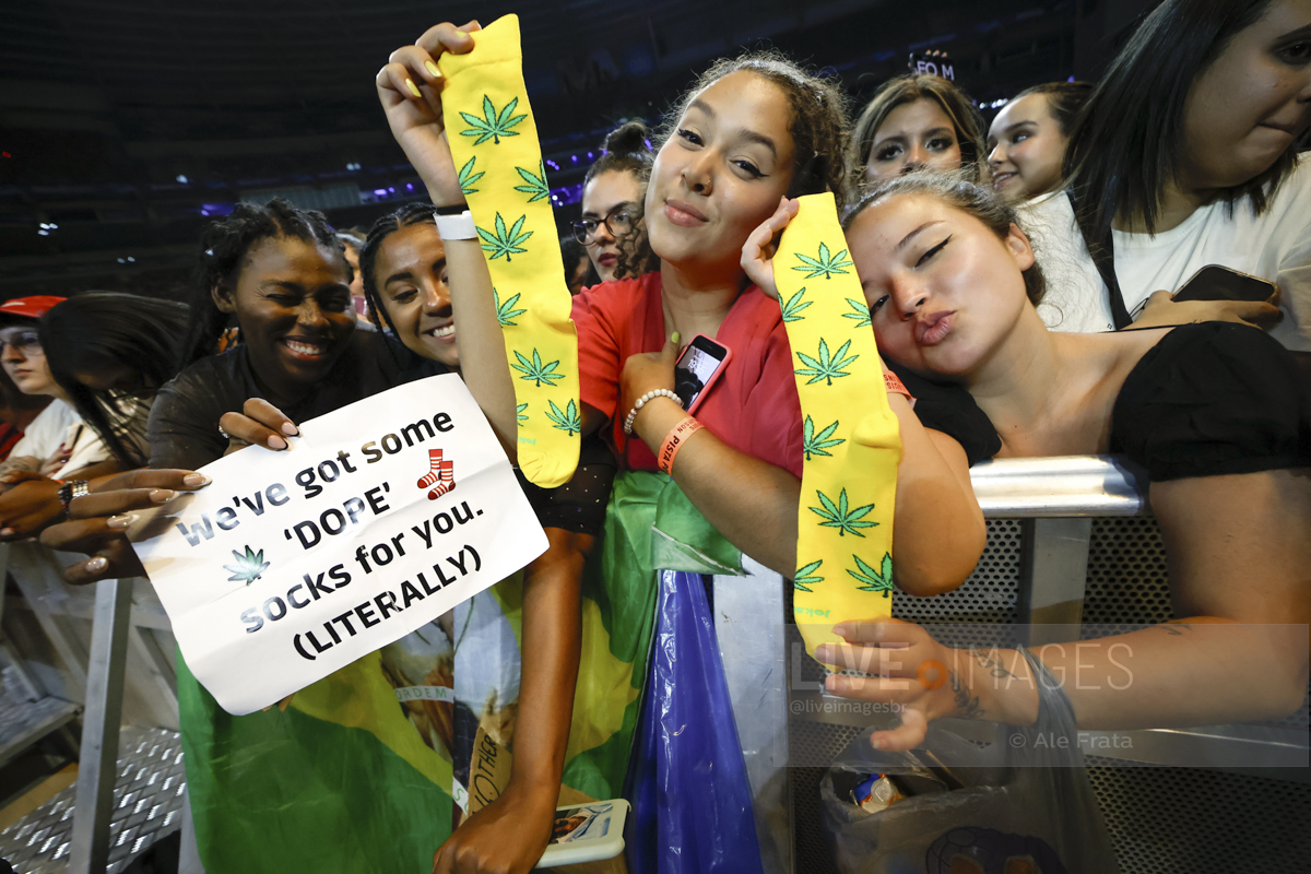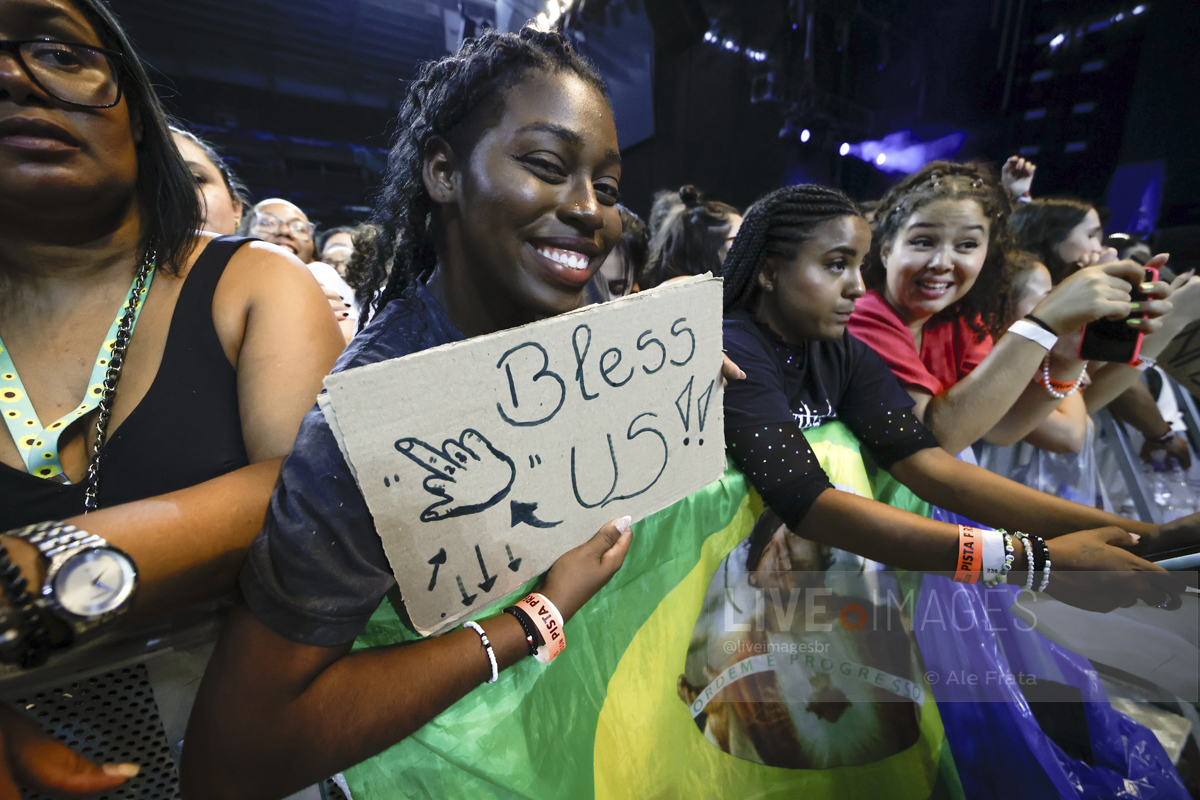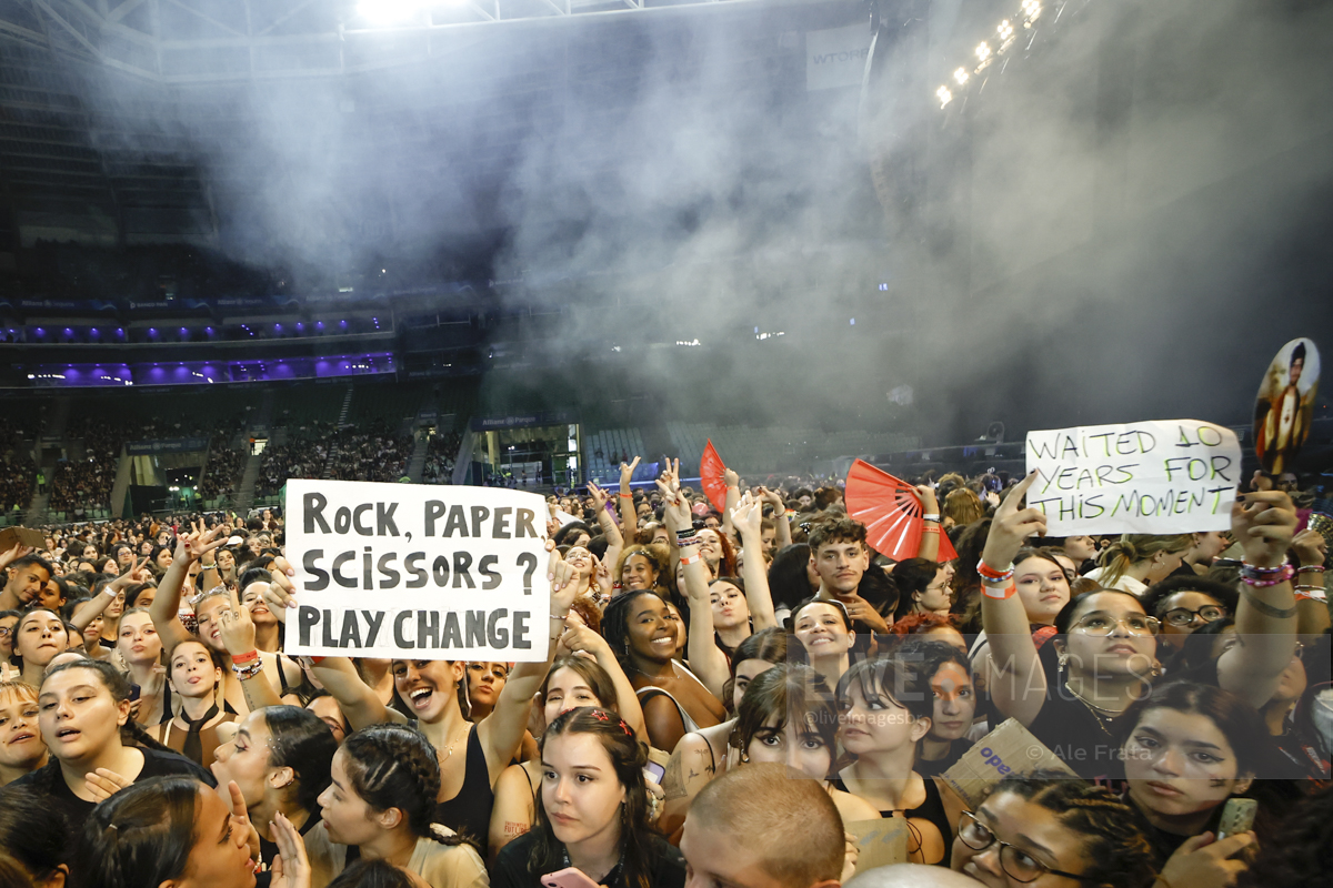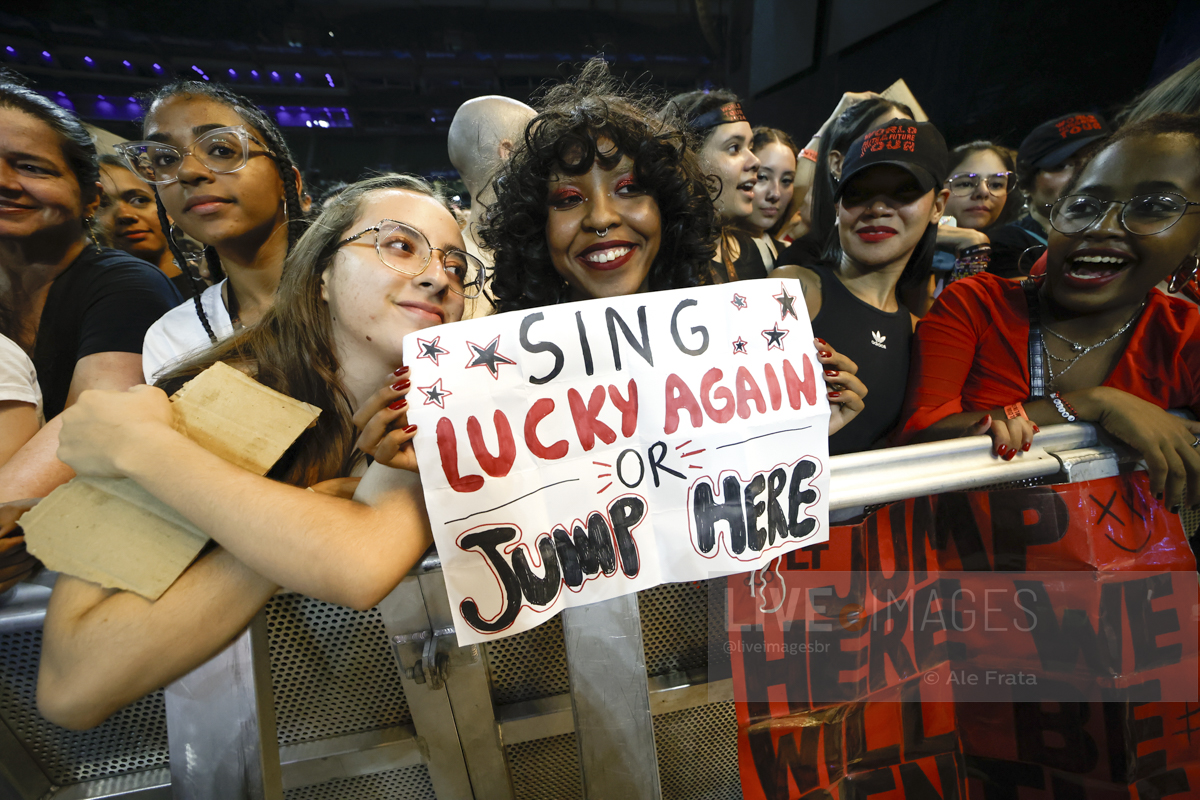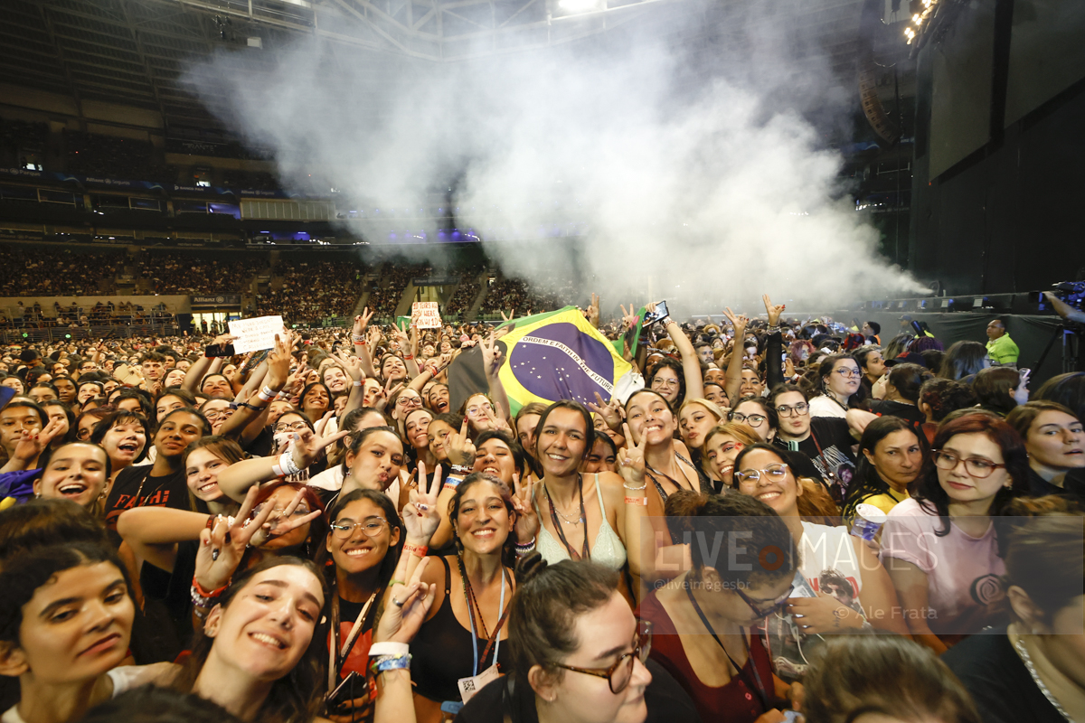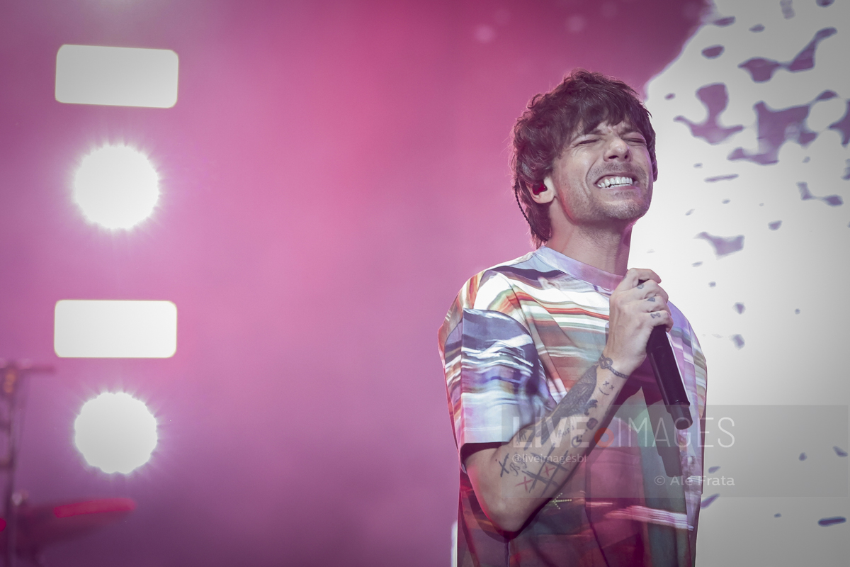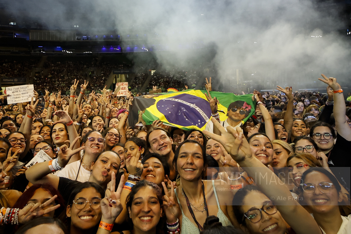 São Paulo, 11/05/2024 – Allianz Parque – O britânico Louis Tomlinson, ex integrante da boy band One Direction, se apresentou em São Paulo, com a turnê Faith In The Future World, segundo álbum da carreira solo do cantor, e que o levou ao topo das paradas inglesas. A tour passou por Rio de Janeiro, São Paulo e Curitiba. Segundo relato de uma fã, mostrar o dedo do meio é uma saudação entre o cantor e seu público. A abertura dos shows ficaram a cargo dos alemães da Giant Rooks, banda indie formada em meados dos anos 2010, que chegou aquecendo o público paulista.