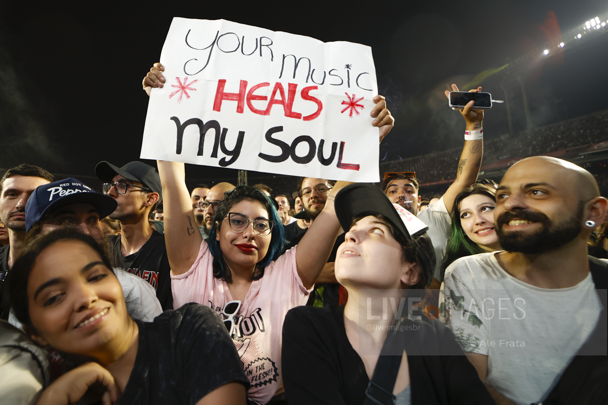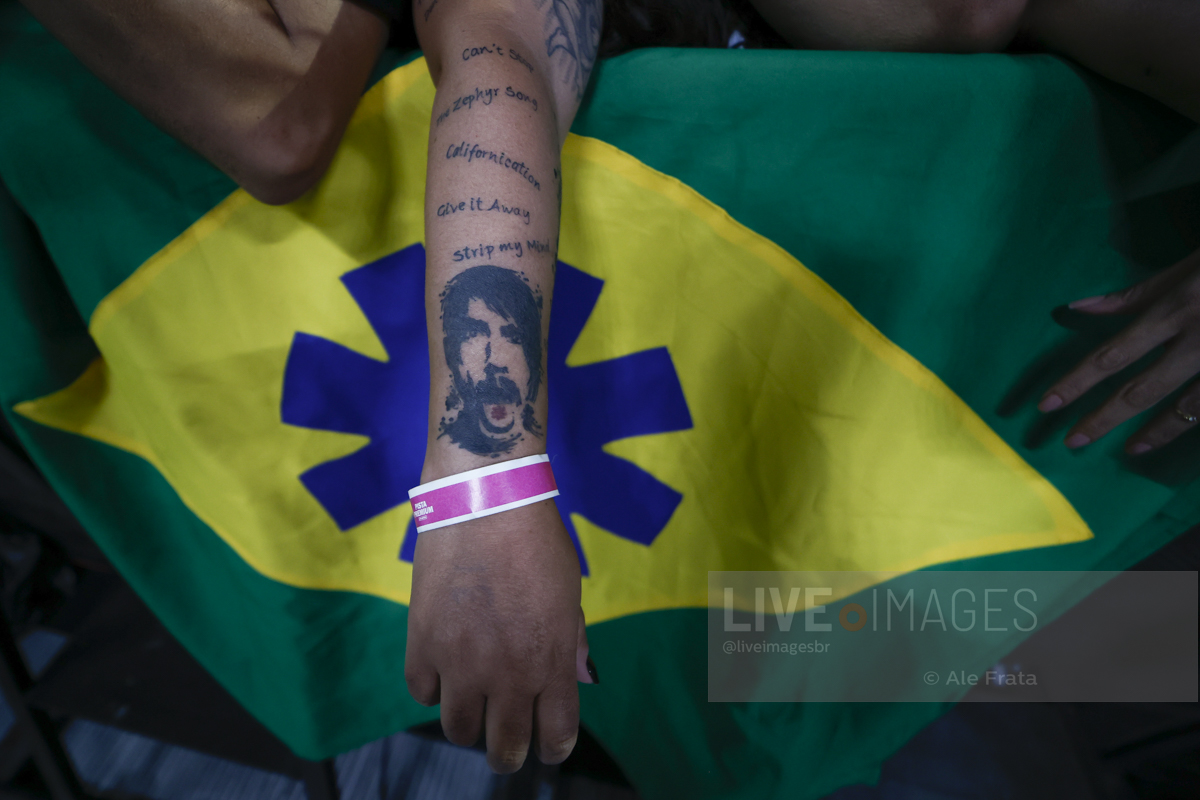 Quem sempre faz grande diferença nos shows é a Galera da Grade, e nós tivemos a oportunidade de bater papos rápidos, enquanto aguardávamos o início das apresentações, e é sempre muito legal quando isso acontece, porque rola uma sinergia entre a equipe do Live Sessions, com troca de informações, histórias de vida ligadas aos artistas, fanatismo, na melhor das expressões, tatuagens e esforços sem medida para acompanhar de pertinho aquela banda, que muito representa na vida de alguém, e por esse motivo, vamos fazer uma galeria só de fotos desse pessoal, que diversas vezes fica acampado na porta do estádio por dias, debaixo de chuva e sol (e que sol) esperando aquele momento chegar, ou até mesmo já está de malas prontas, para ao final do show seguir para o próximo destino que a banda irá se apresentar. Tinha até um fã japonês por lá, que obviamente se destacou pelos cabelos cor de rosa. Nós do Live Sessions temos muita admiração por esse pessoal (até porque um dia já fomos desse outro lado da grade), que muitas vezes quando a banda não é das maiores conhecidas de nossa equipe (o que não é o caso do RHCP), são quem nos salvam, dando dicas de performances e momentos inusitados que acontecerão naquela apresentação. Infelizmente fica impossível registrar todo mundo, mas alguns estarão por aqui para sempre, conosco. E nos vemos no próximo show.
