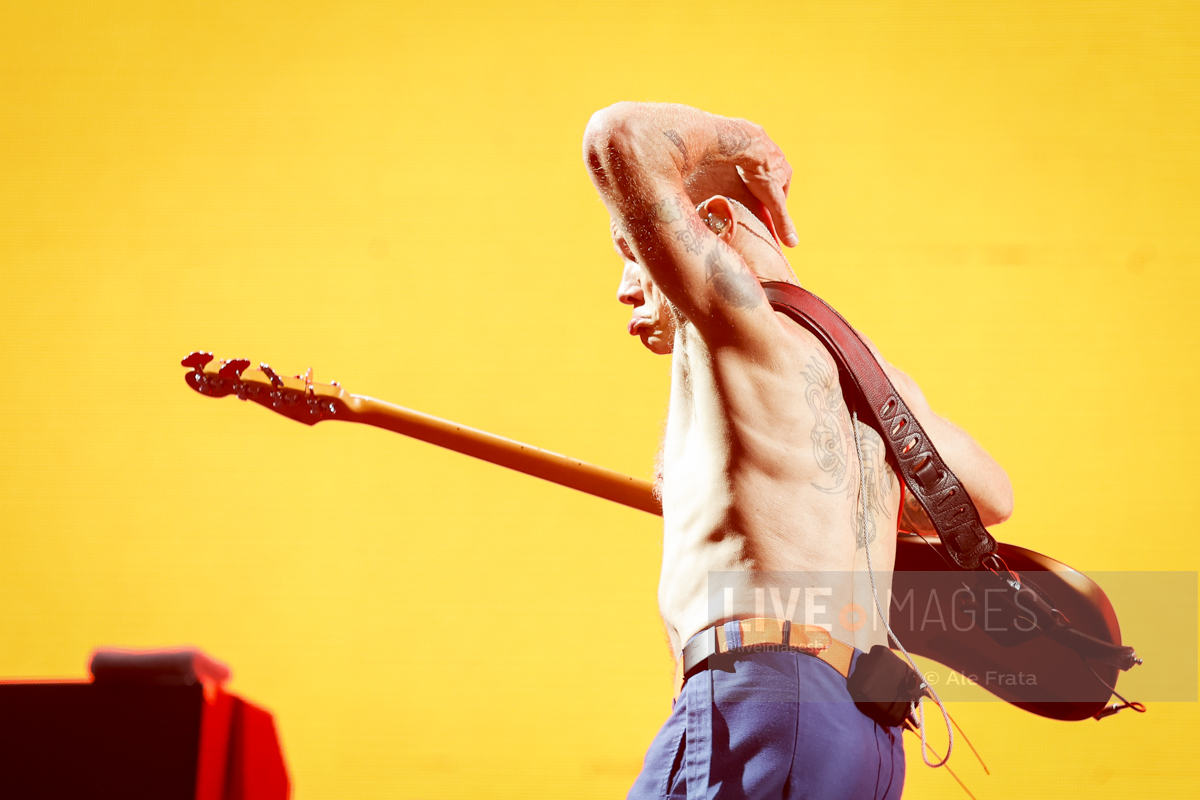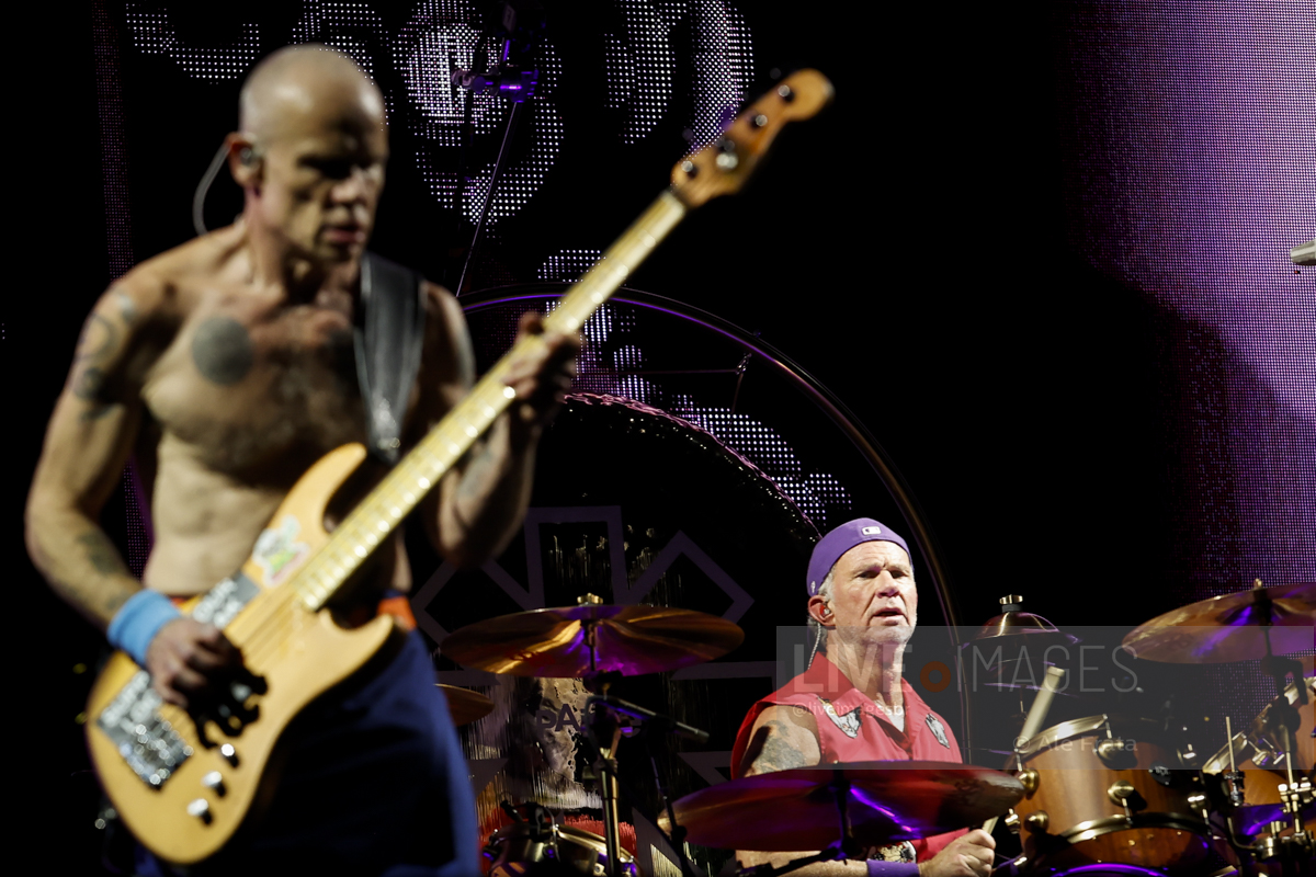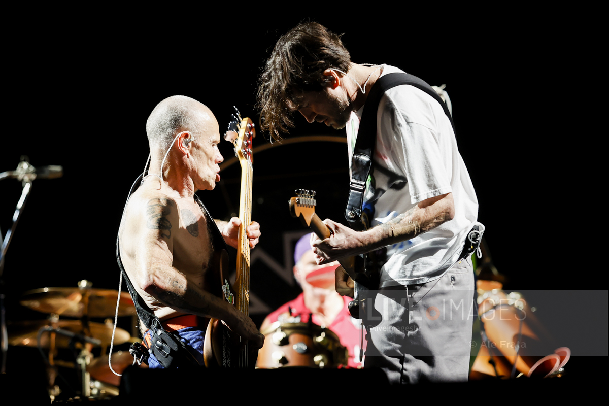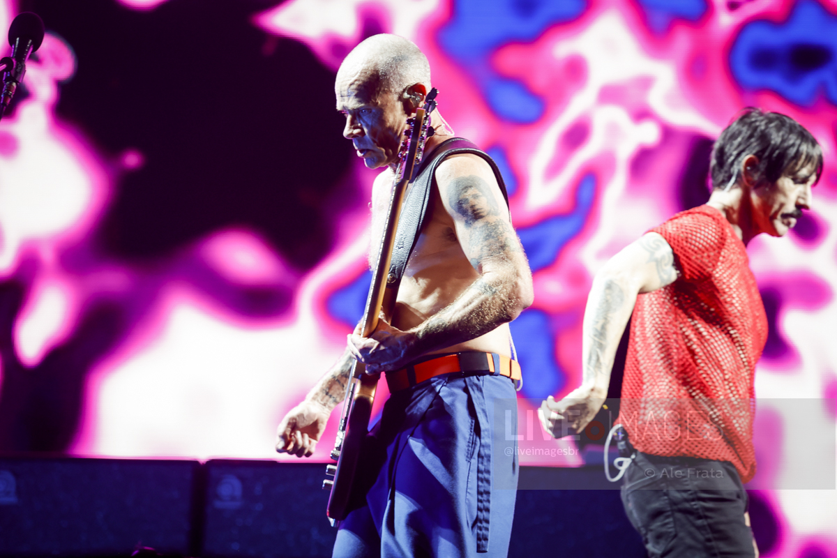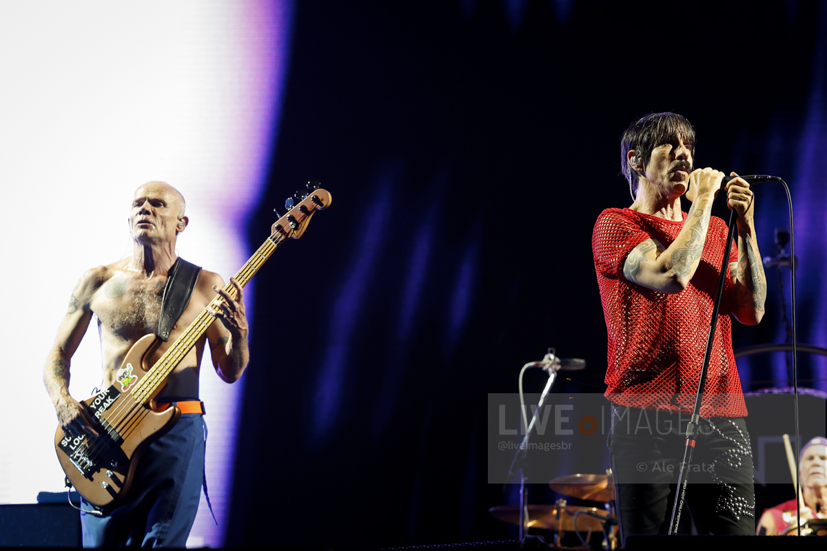 Os caras, que estão de cara limpa há bons tempos, como eles mesmos definem, estão com performance de palco muito boa, Flea pula como se fosse um garoto de 20 e poucos anos, Anthony também se movimenta bastante, mas ainda sim, nada que se compare com aquele jovem maluco que apareceu na década de 1980 e Chad, sempre preciso e matador em seu andamento. O mais “tranquilo” no palco, é justamente o caçula da banda. John pouco se movimenta, perto de Flea e Anthony, o que não impede de interagir por alguns momentos, principalmente com o baixista. Por falar em interação, a banda não fez isso do modo que se esperava, com o público. Em raros momentos chegaram a citar o nome da cidade e ao final Chad jogou suas baquetas numa velocidade, que chegaram bem perto da pista comum.