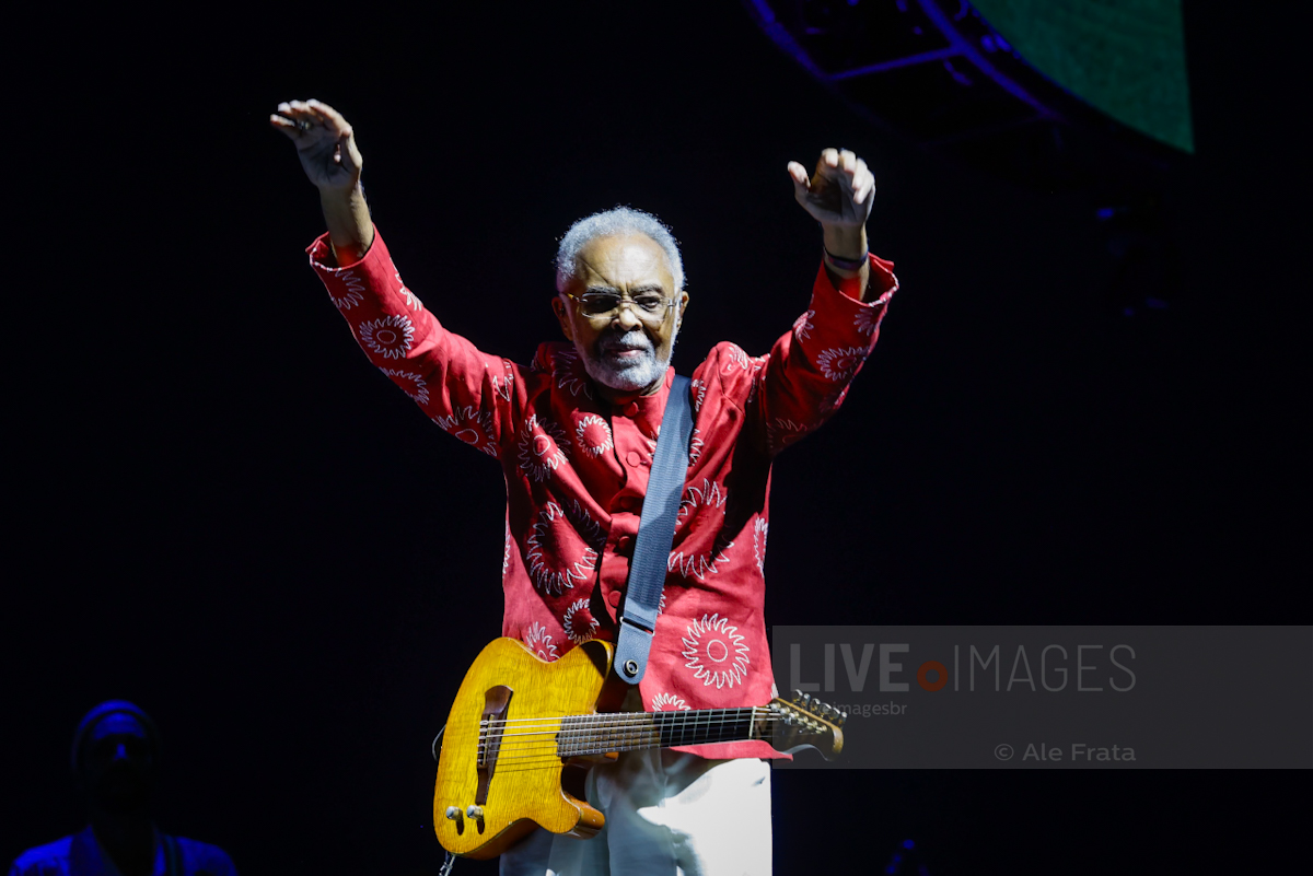 Gil, com seu alto astral habitual, foi saudado pelo público na melhor forma que um artista do seu nível merece.