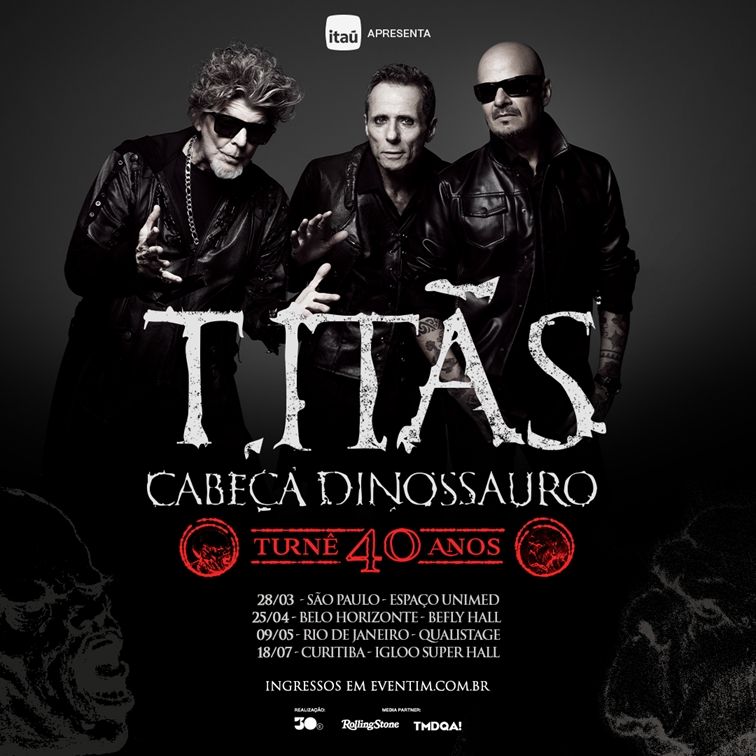 Um dos álbuns mais importantes da história da música brasileira completa quatro décadas em 2026 — e vai ganhar a estrada. Os Titãs anunciam a turnê “Titãs – Cabeça Dinossauro 40 anos”, que celebra o clássico lançado em 1986 e estreia no dia 28 de março de 2026, no Espaço Unimed, em São Paulo. A tour também passa por Belo Horizonte, Rio de Janeiro e Curitiba, em realização da 30e e com apresentação do Itaú.
